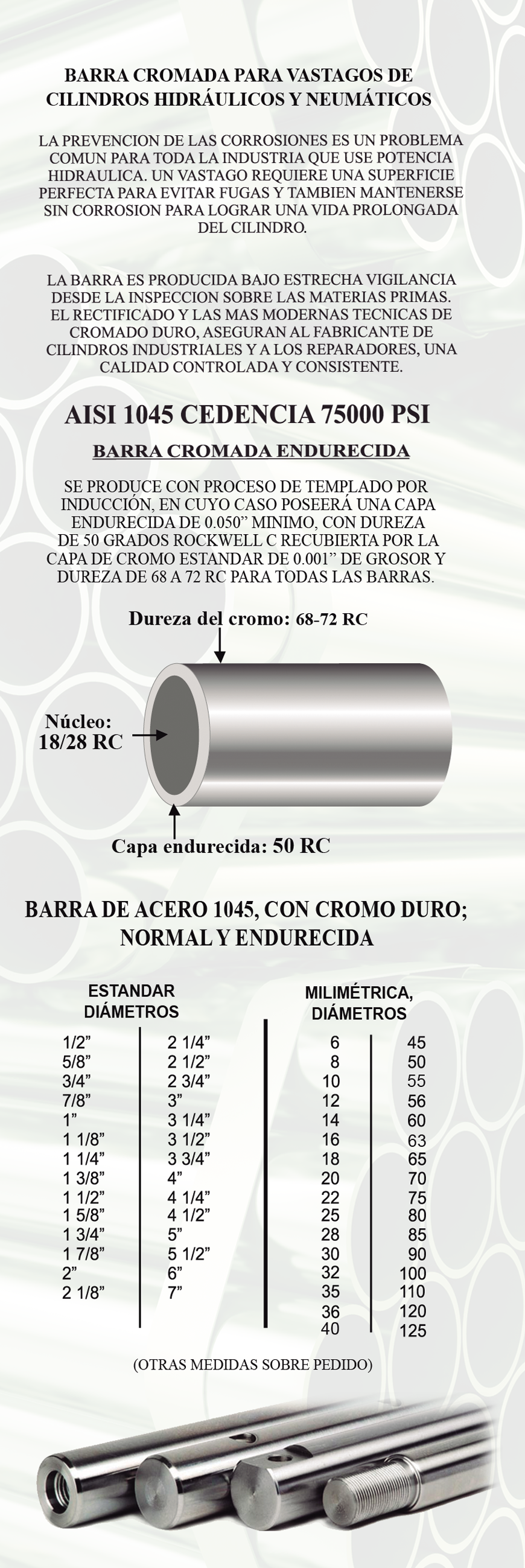 BARRA CROMADA PARA VASTAGOS DE CILINDRO HIDRÁULICOS Y NEUMÁTICOS