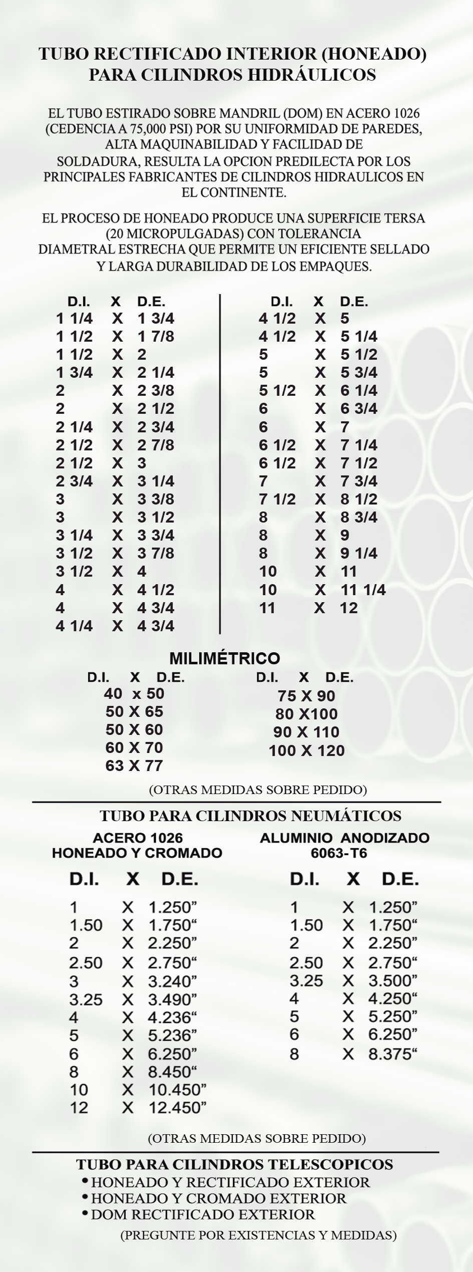 TUBO HONEADO Y SKIVED PARA CILINDROS HIDRÁULICOS Y NEUMÁTICOS